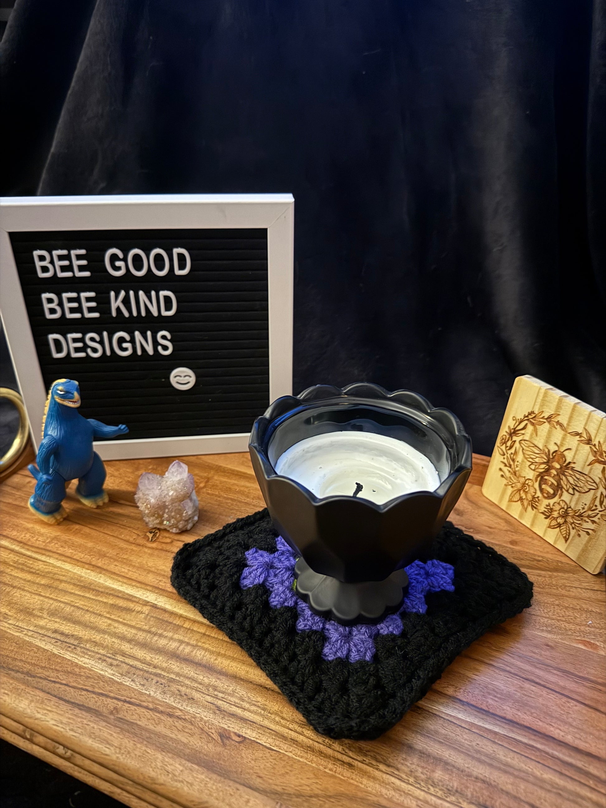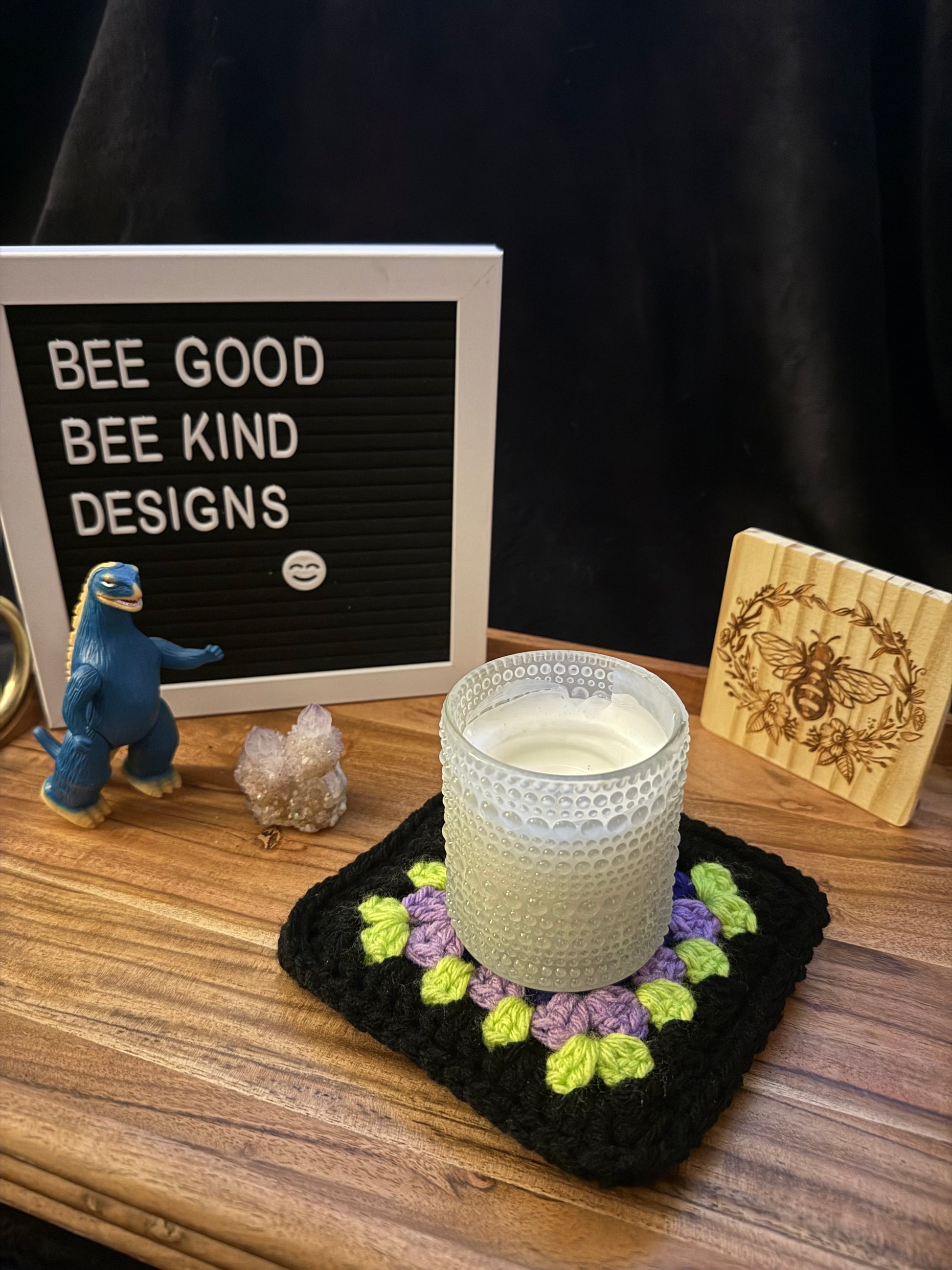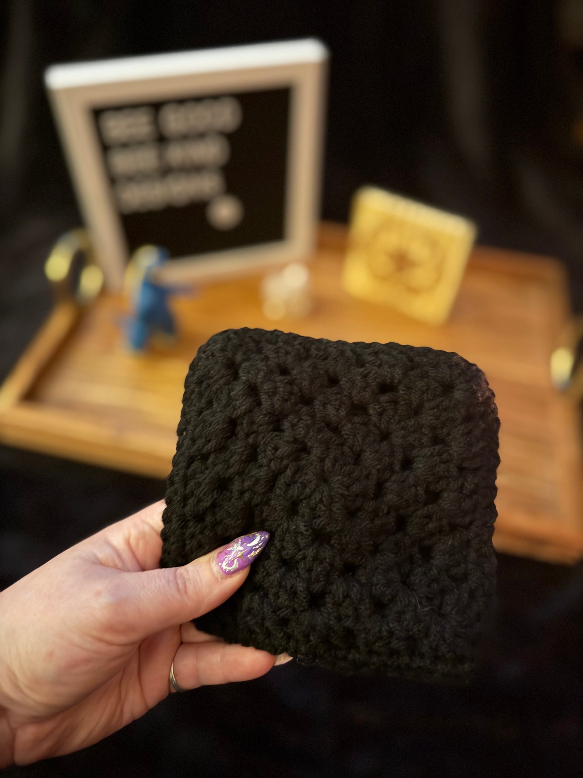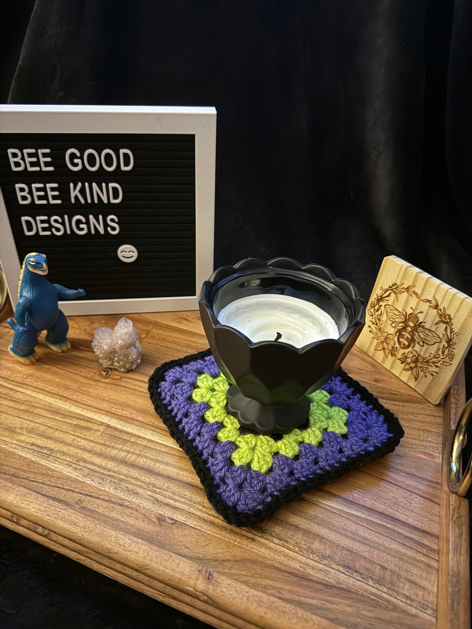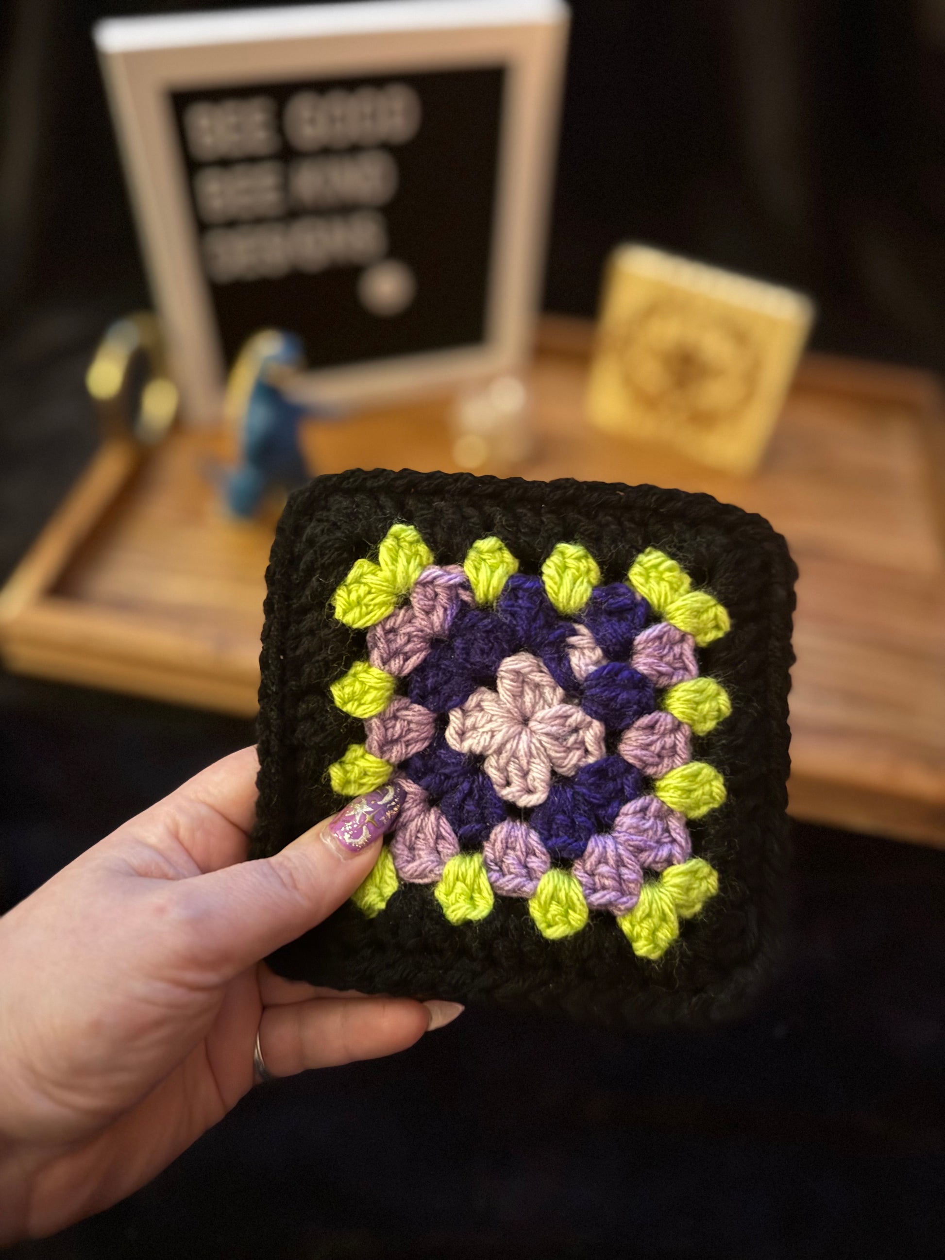 You told us what Halloween colors you were dying to see in a granny-square coaster, and we listened! These spooky beauties are made of rich, witchy purples, wicked-bright lime green, and deep midnight black. I’m obsessed with how killer this combo turned out!!!